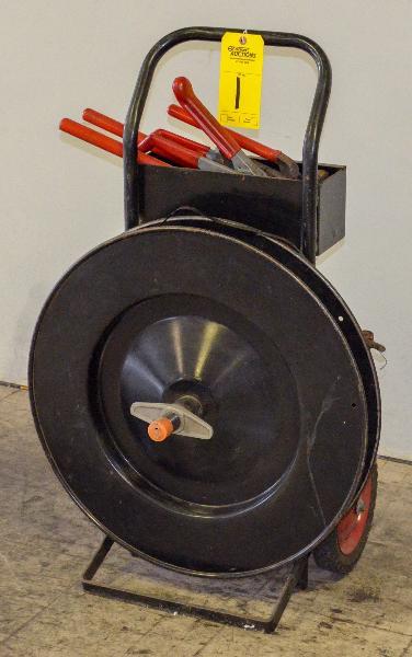 Used LOT OF 24" DIAMETER STEEL BANDING CART & BANDING TOOLS for sale